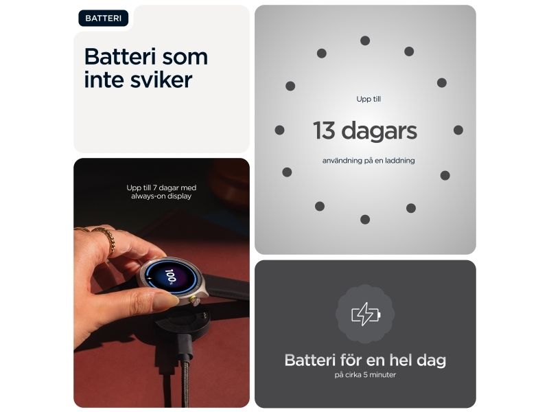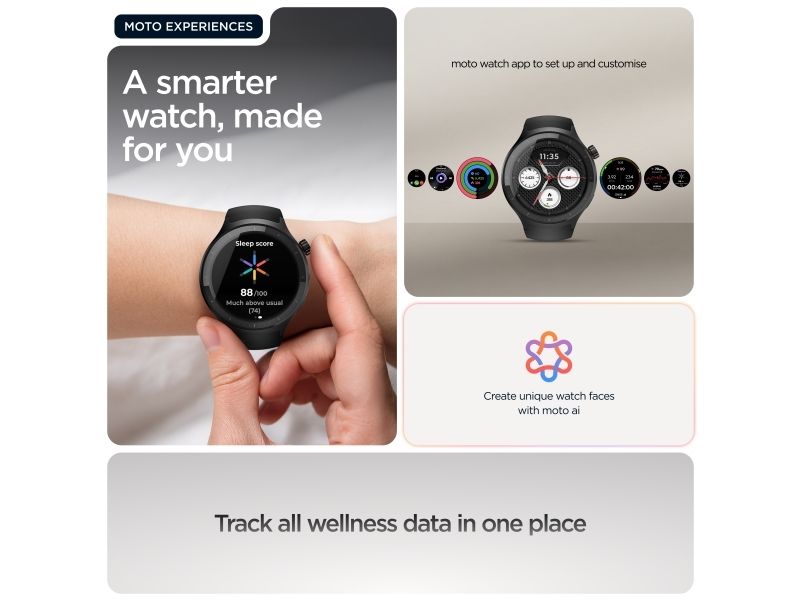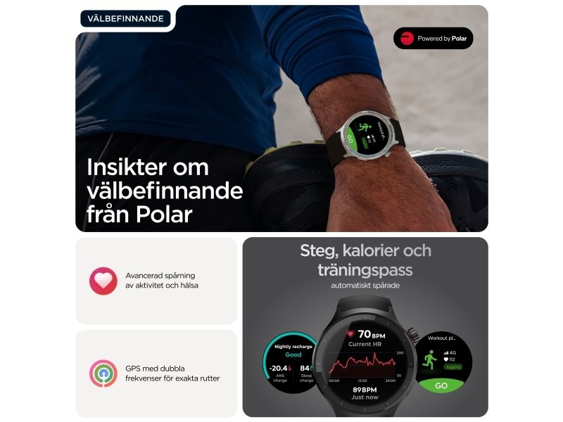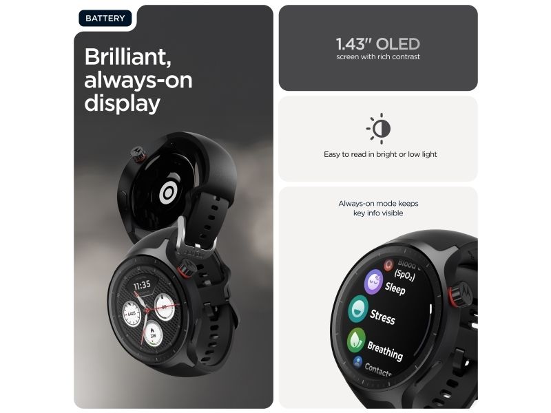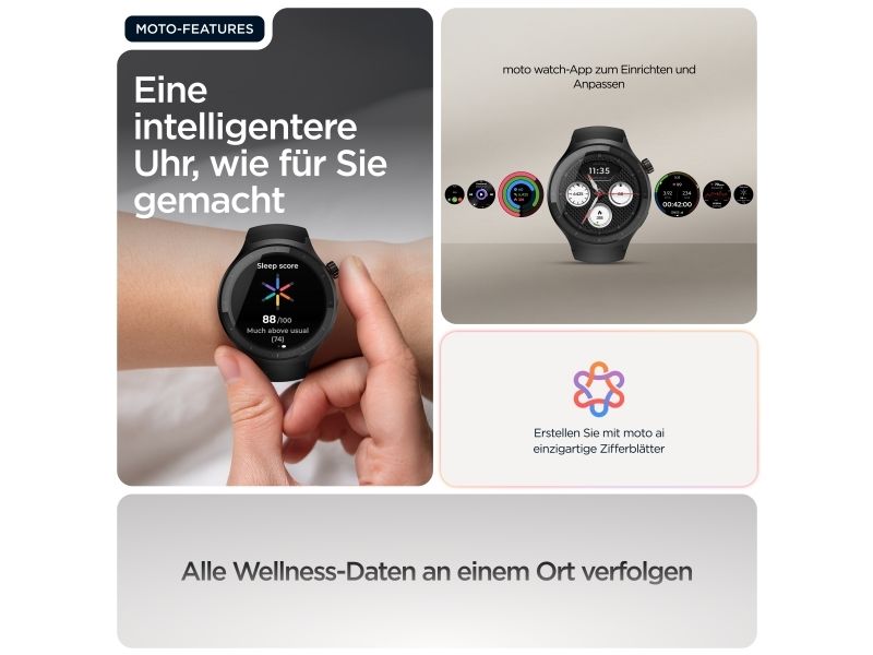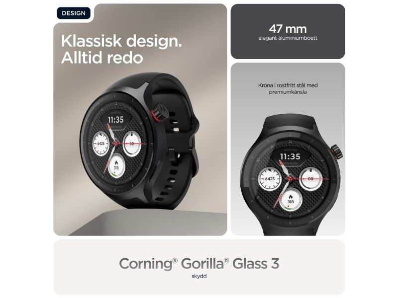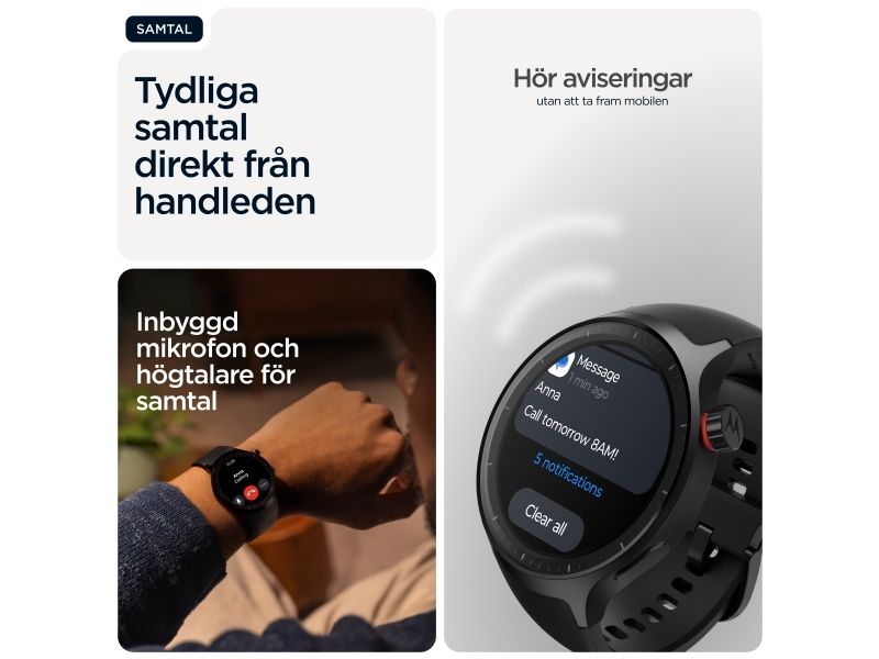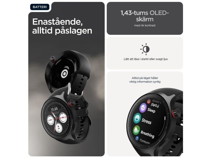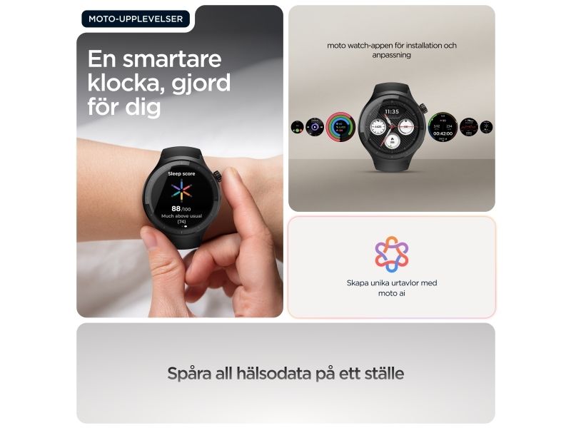 Motorola Moto Watch kombinerar innovativ teknik med elegant design och erbjuder användarna en smart klocka som är både funktionell och moderiktig. Den 1,4 tum stora OLED-skärmen skyddas av Corning Gorilla Glass 3, vilket gör den reptålig samtidigt som den bibehåller levande färger för enkel läsbarhet när som helst på dygnet. Med en rad fitnessspårningsfunktioner, inklusive hjärtfrekvens, förbrända kalorier och sömnstadier, är denna bärbara enhet perfekt för hälsoentusiaster. Användarna kan anpassa urtavlorna och dra nytta av avancerade sensorer, inklusive ett gyroskop och en PPG-sensor, vilket förbättrar den totala upplevelsen. Dessutom stöder Moto Watch Bluetooth 5.3 BLE för sömlös anslutning och är utformad med ett silikonband som enkelt kan bytas ut för att passa personliga stilpreferenser.
