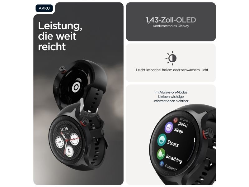 Motorola Moto Watch - Mat svart - smart klocka med band - silikon - pantone volcanic ash - display 1.4" - 4 GB - Bluetooth - 40 g