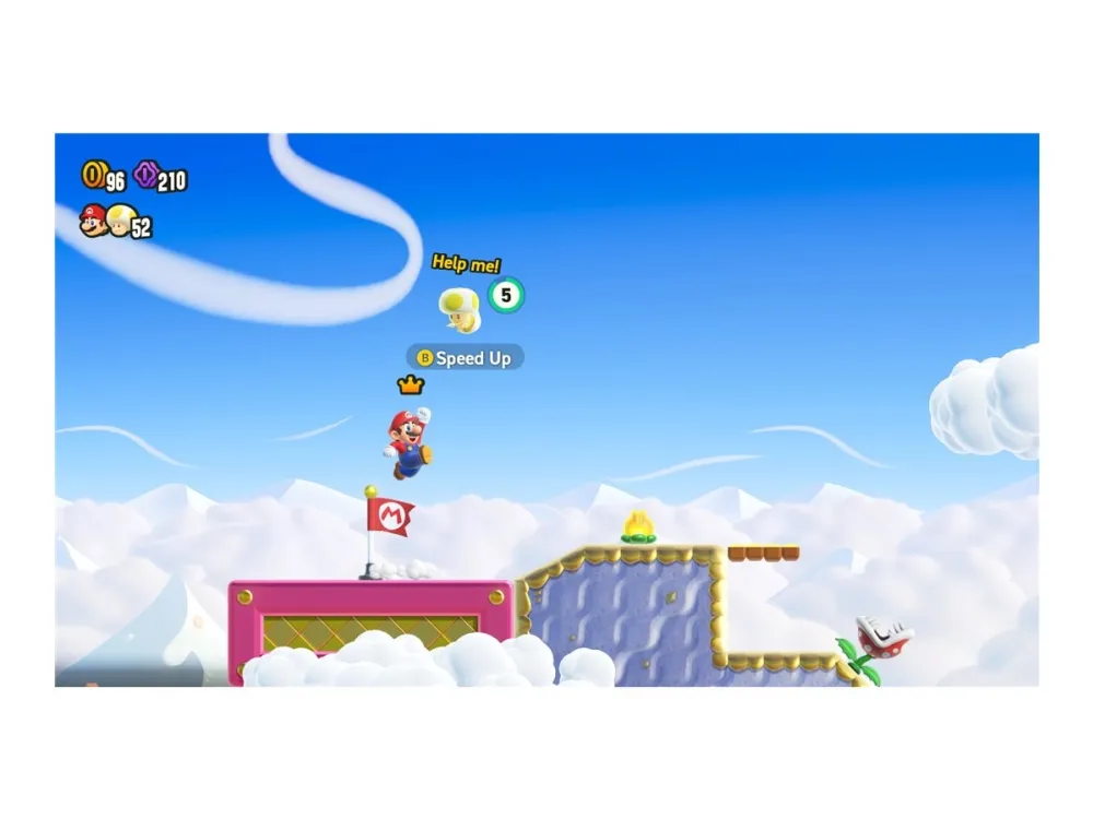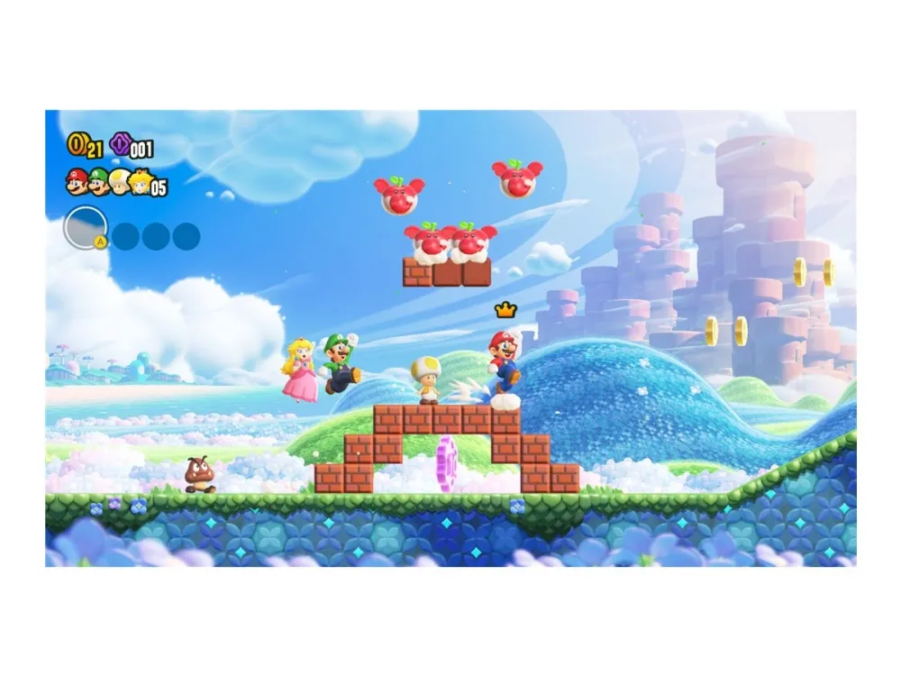 Det klassiska Mario-spelet med sidledsrullning ställs på huvudet med tillägget av underblommor. Dessa spelförändrande föremål utlöser spektakulära ögonblick som du måste se för att tro ... Bevittna rör som blir levande, skapa förödelse som en gigantisk spikig boll och se ännu fler oväntade händelser som kallas Wonder Effects.