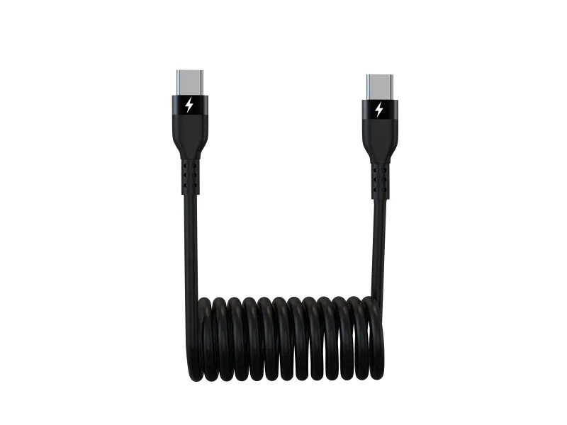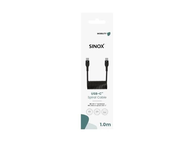 Sinox USB C-spiralkabel. 1m. Sort