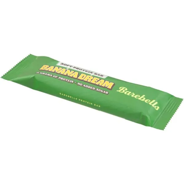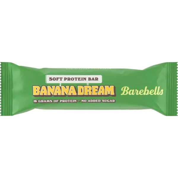Barebells Banana Dream Soft Protein Bar er en smagfuld proteinbar med blød konsistens, uden tilsat sukker og med højt proteinindhold, perfekt til aktive mennesker eller som et lækkert, mere ernæringsrigt snackvalg i hverdagen.