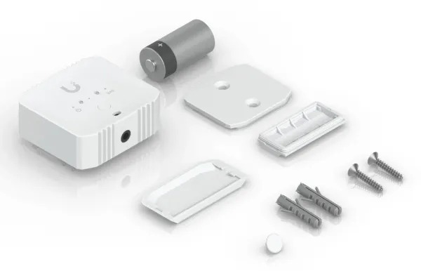Battery-powered SuperLink sensor that detects water leaks, temperature, humidity, and ambient light.Ubiquiti USL-Environmental. Product type: Multisensor, Measuring functions: Ambient temperature, Relative air humidity, Ambient light, Connectivity technology: Wired. Power source type: Battery, Battery technology: Lithium, Battery type: CR123A. Weight: 47.8 g, Width: 53 mm, Depth: 23.5 mm. International Protection (IP) code: IPX5