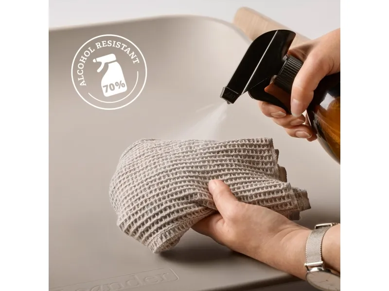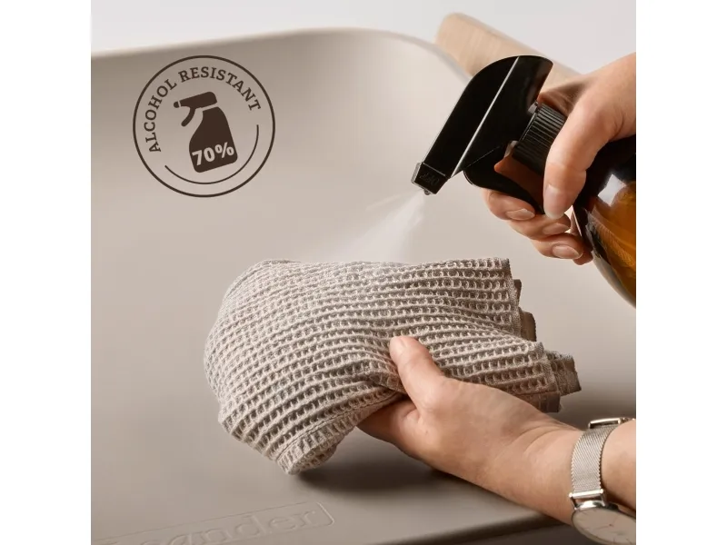Rengøres med en tekstil klud med vand og mild sæbe og desinficeres med en tekstil klud med 70% sprit