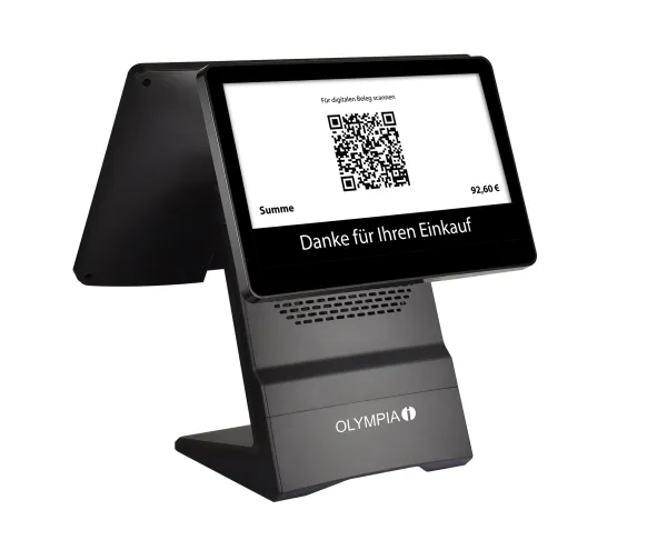 Olympia T400DK. Display diagonal: 39.6 cm (15.6"). Chassis type: All-in-One, Product colour: Black. Operating system installed: Android 11. Width: 390 mm, Depth: 215 mm, Height: 380 mm. Quantity per pack: 1 pc(s), Package width: 465 mm, Package depth: 285 mm
