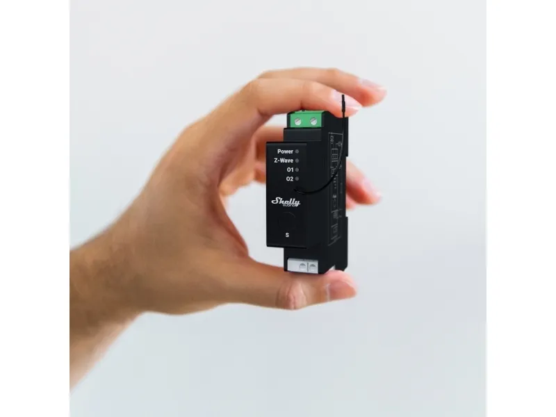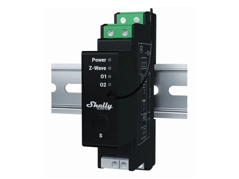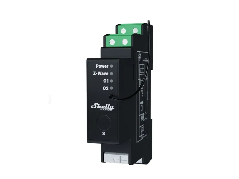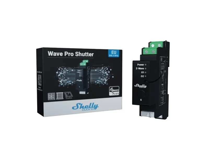 Professional DIN rail Z-Wave® shutter control with power metering, 16 A per channel. Suitable for home and facility automation with remote control of motorized blinds, roller shutters, venetian blinds, awnings, etc. DIN-rail mountable inside a breaker box. It is recommended to use only motors with electronic or mechanical limit switches. Control the tilt position (angle) of the venetian blind slats. Supports push-buttons/momentary switches, and toggle switches. Power metering. Extremely low power consumption: < 0.3 W. Z-Wave frequency band: 868.4 MHz (CEPT countries). Latest technology: Z-Wave 800 Series. Automatic set-up with SmartStart. Security 2 Authenticated for the highest level of security. Supports over-the-air firmware updates. Works with Z-Wave certified gateways and over 4,000 Z-Wave devices.