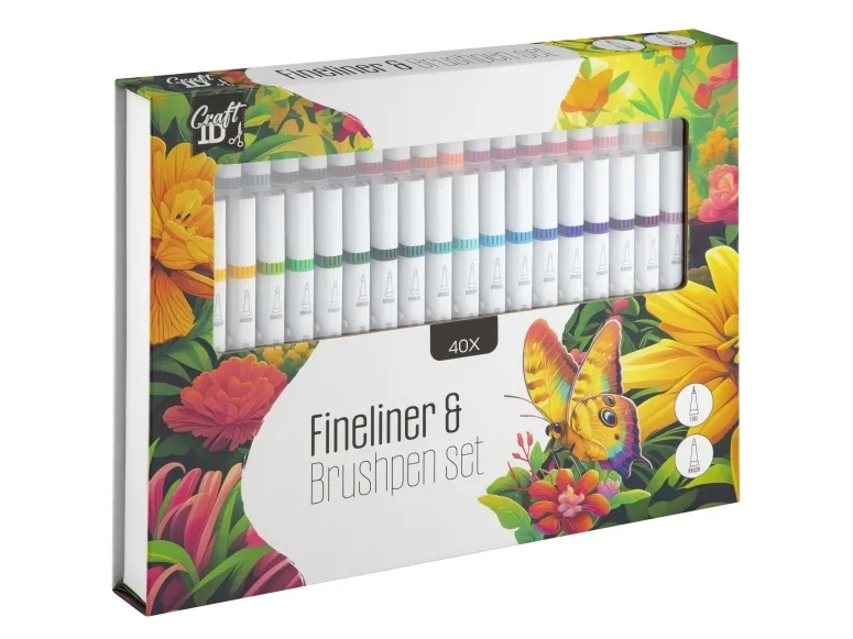 Fineliner & Brushpen set 40 st. i kartong