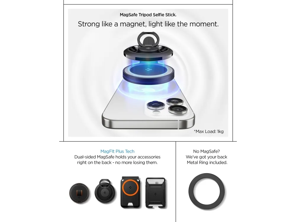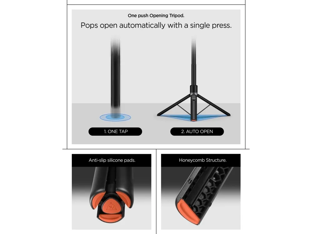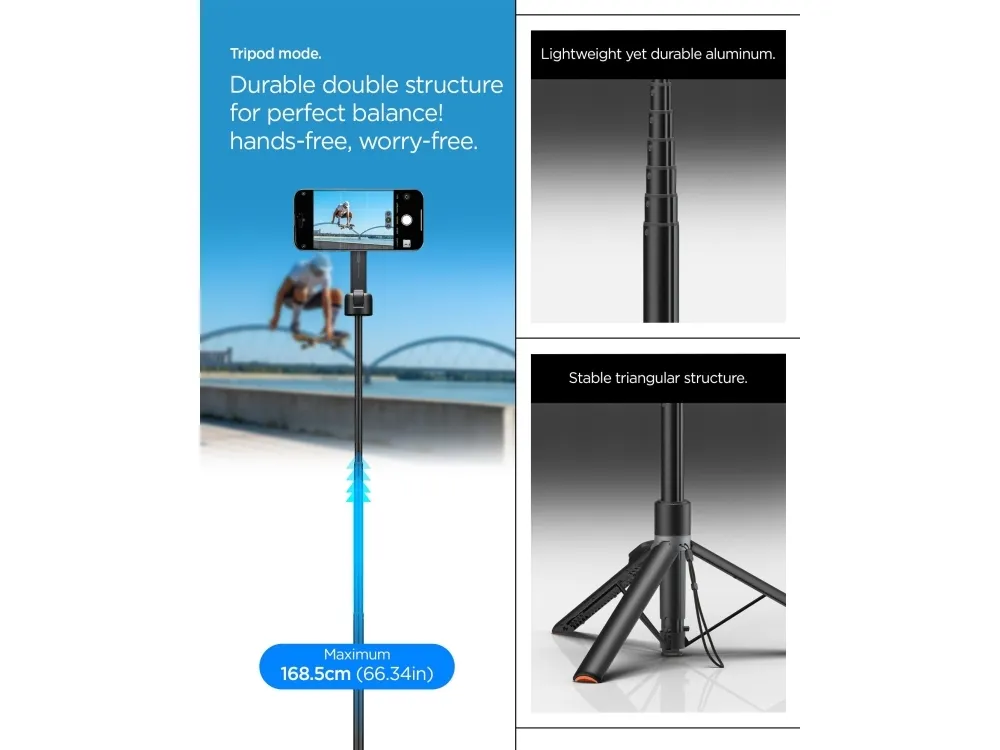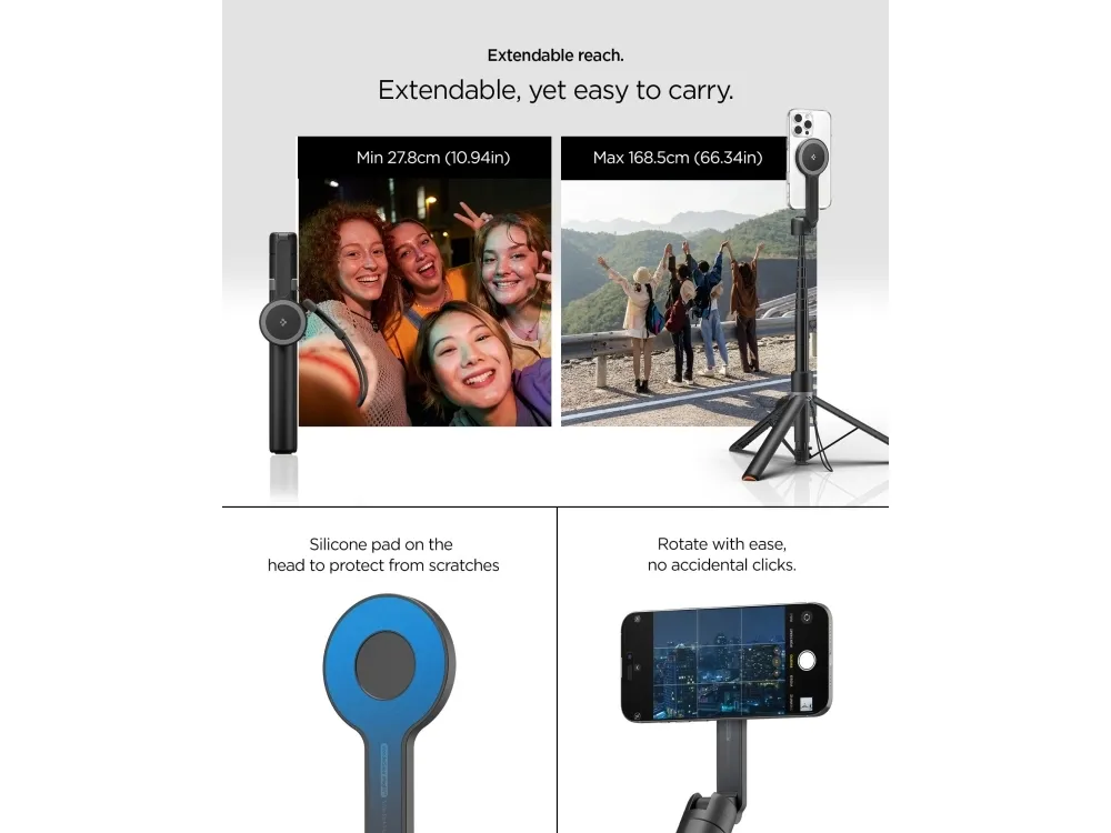 Spigen Tripod Selfie Stick (Magfit) | S581W, Smartphone, Svart, Varje varumärke, Gjuten aluminium, 27,8 cm, 168,5 cm