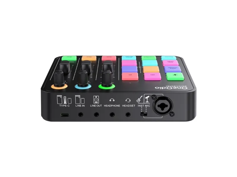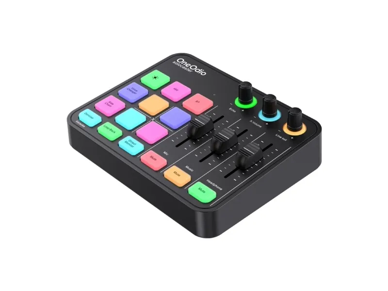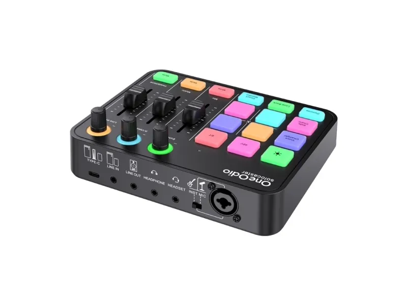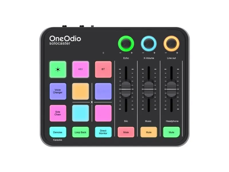 The OneOdio Solocaster is a state-of-the-art USB audio mixer for streaming and recording, designed for creators who want full control over audio during live broadcasts. The device offers advanced mixing of multiple audio sources, a Loopback function and a real-time noise cancellation filter, so your voice remains clear and intelligible even in more challenging conditions. Intuitive controls with FX effect pads and faders, multi-mode RGB backlighting and built-in voice effects allow you to quickly adjust your sound without the need for additional software.