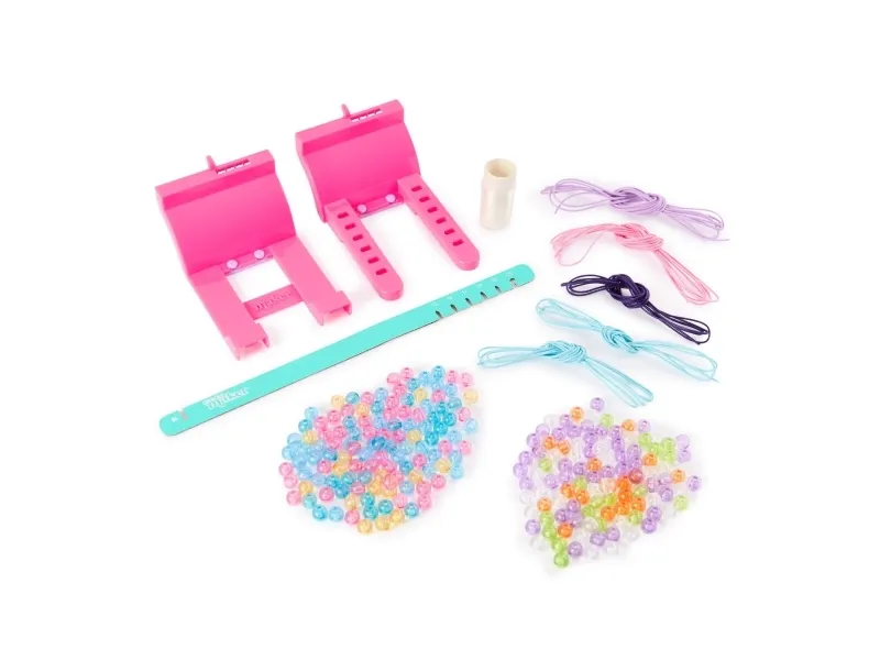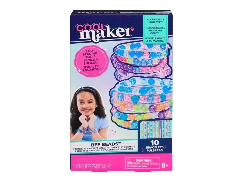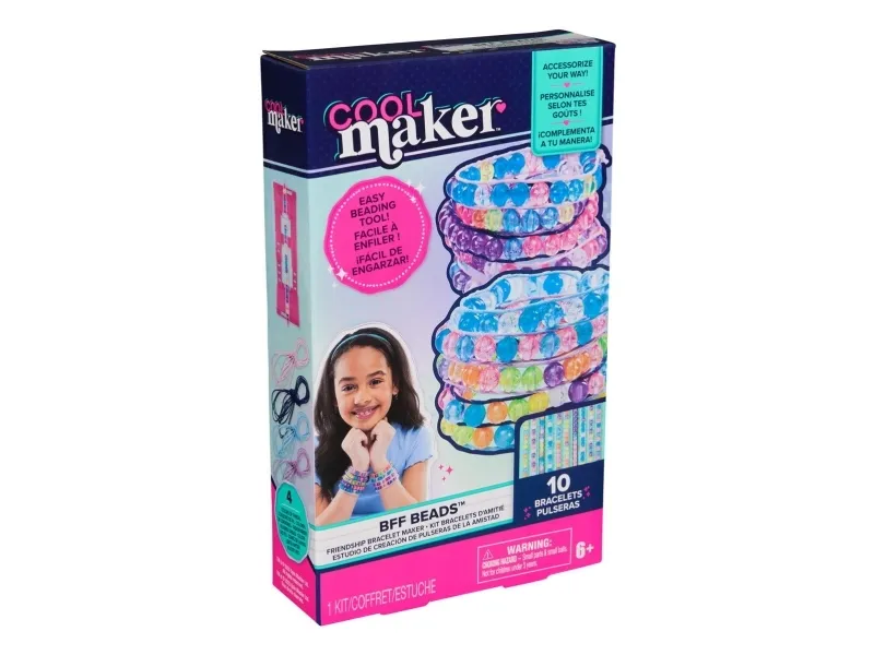 Bliv en kreativ skaber hver dag med Cool Maker BFF Perler Venskabsarmbåndsmaskine. Dette alt-i-ét armbåndssæt indeholder alt, hvad børn skal bruge for nemt at skabe 10 stilfulde venskabsarmbånd, inklusive 230 perler, 4 farver snor og en mini-armbåndsmaskine. Det er nemt at lave perlesmykker med sættet: mål dit håndled, placer en snor i studiet, træk perlerne på snoren og klip til. Med 8 forskellige farver af gennemsigtige perler at vælge imellem, kan børn designe og tilpasse deres armbånd, præcis som de vil, og bære dem eller dele med venner. Uanset om du leder efter engagerende aktiviteter til børn som overnatninger, fødselsdagsfester, skolestart, regnvejrsdage eller hverdage, er Cool Maker-krea for børn et velkomment supplement til perlesæt og kreative materialer. For flere måder at skabe med Cool Maker, kig efter Stack’d Heishi Armbåndsmaskinen og andre kreative kits som Stilfuldt Vindspil, Hjerteformet Håndtaske og meget mere (sælges hver for sig). Lav farverige venskabsarmbånd med Cool Maker BFF Perler Venskabsarmbåndsmaskine.