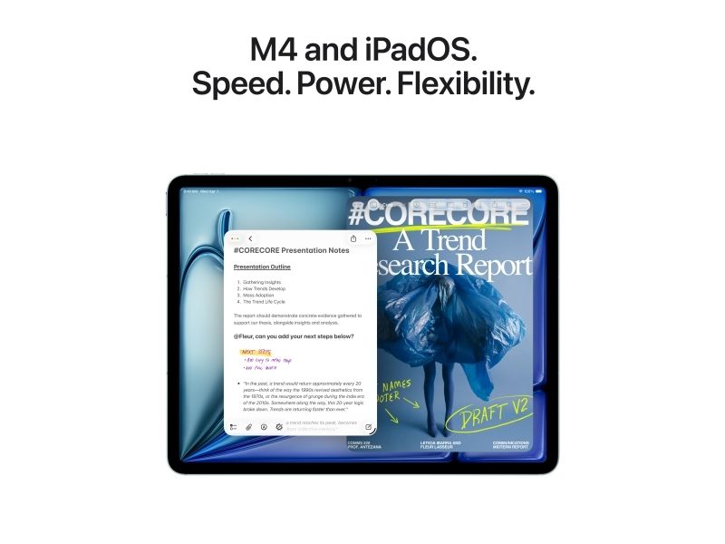 Apple 11-tums iPad Air förbättrar produktiviteten och kreativiteten med sina imponerande funktioner. Den är utrustad med en Liquid Retina-skärm som ger levande bilder och stöder Apple Pencil-funktionalitet, vilket gör att användarna kan skissa, ta anteckningar och kommentera dokument på ett smidigt sätt. Enheten stöder ett brett färgomfång tillsammans med HDR10 och Dolby Vision för en uppslukande tittarupplevelse. Ett kraftfullt M4-chip integrerar funktionalitet med robust prestanda, vilket gör den idealisk för multitasking eller grafikintensiva applikationer.