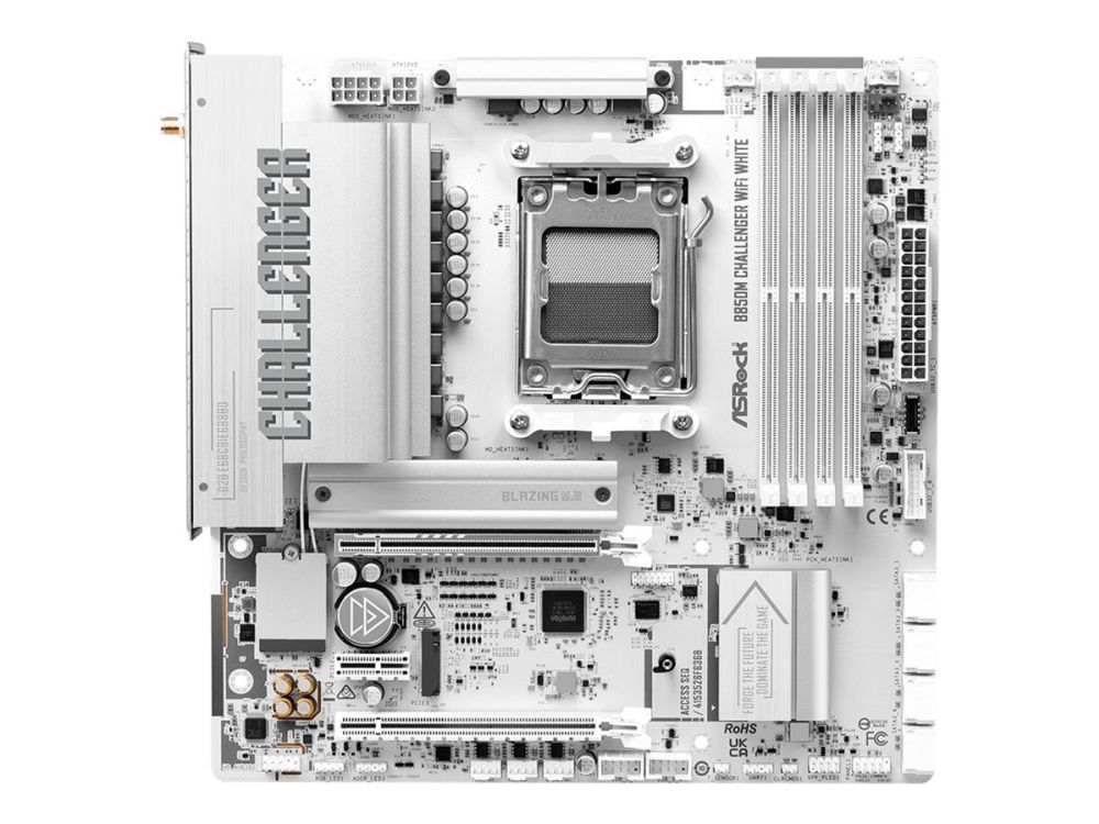 ASRock B850M Challenger WiFi White - Moderkort - micro ATX - Socket AM5 - AMD B850 Chipuppsättning - USB 3.2 Gen 1, USB-C 3.2 Gen 1 - 2.5 Gigabit LAN, Bluetooth, Wi-Fi 7 - inbyggda grafiken (CPU krävs) - HD-ljud (8 kanaler)