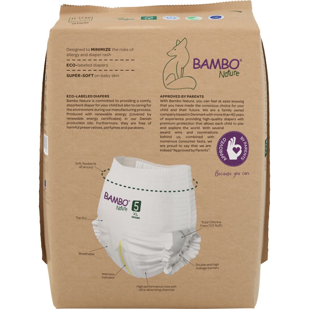Babyblöja, byxblöja, miljömärkt, Bambo Nature Pants, 5, papperspåse, 11-17 kg - (5 förpackningar x 19 st.)