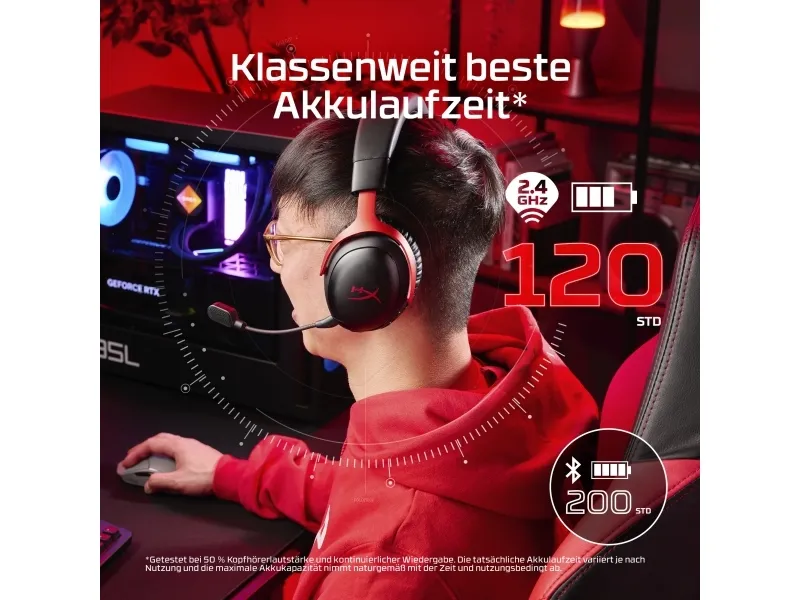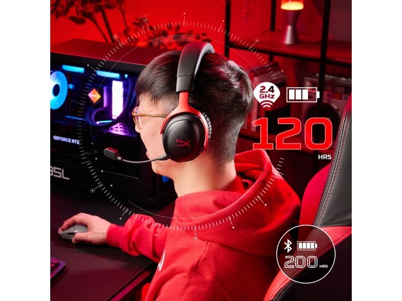 HyperX Cloud III S trådlöst – gaming-headset (svart/rött), Trådlös, Spela, 20 - 20000 hz, 340 g, Headset, Svart, Röd
