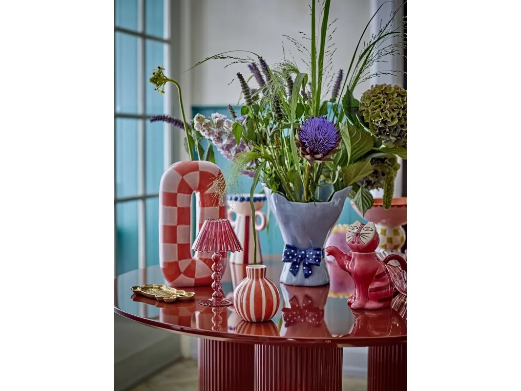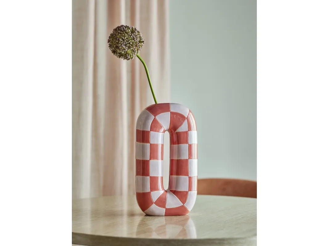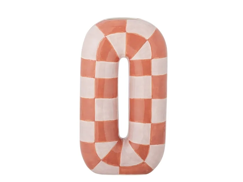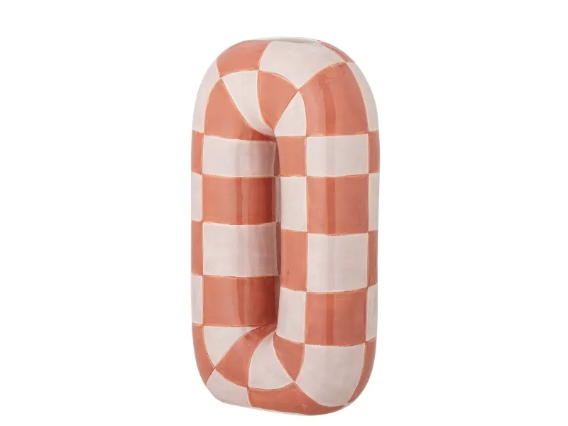 Mae Vasen fra Bloomingville er en dekorativ vase i keramik af dolomit med en blank, håndmalet overflade. Den har en buet U-form i orange med et mønster i orange og rosa. Små variationer i mønster og farvestyrke kan forekomme, så hver vase er unik.