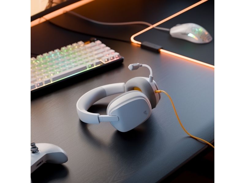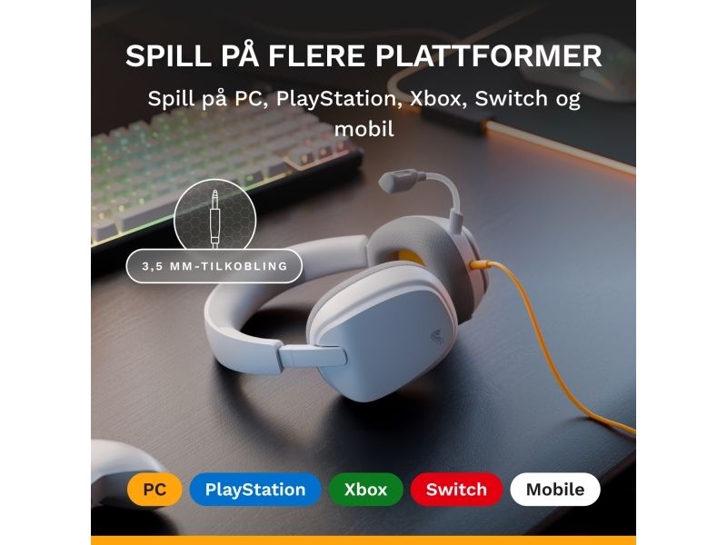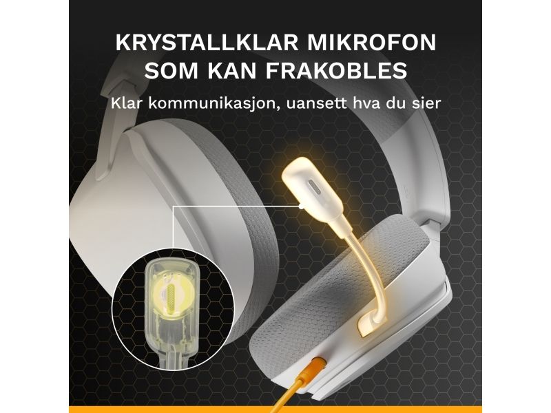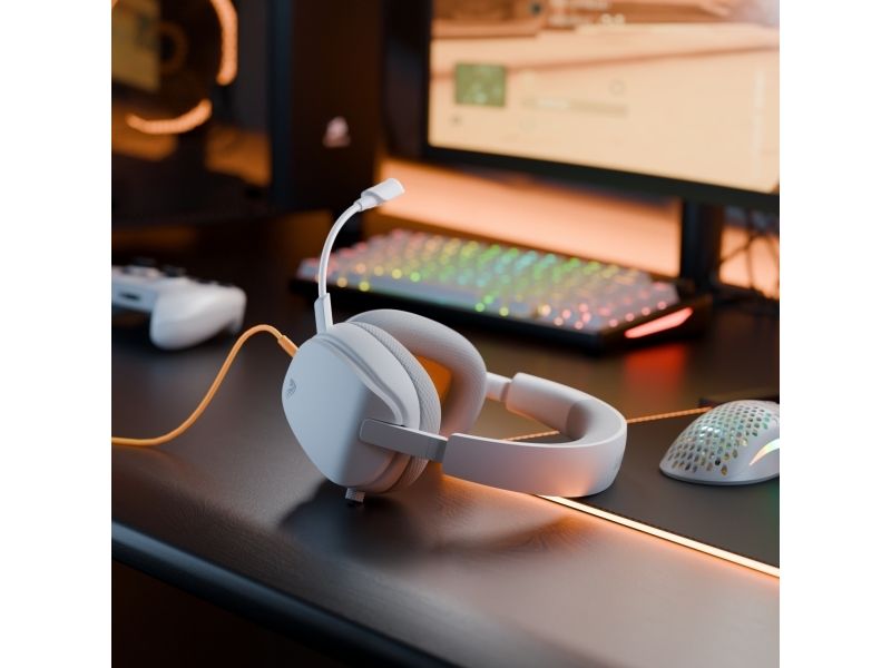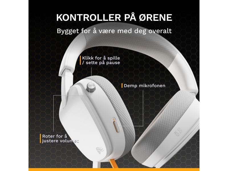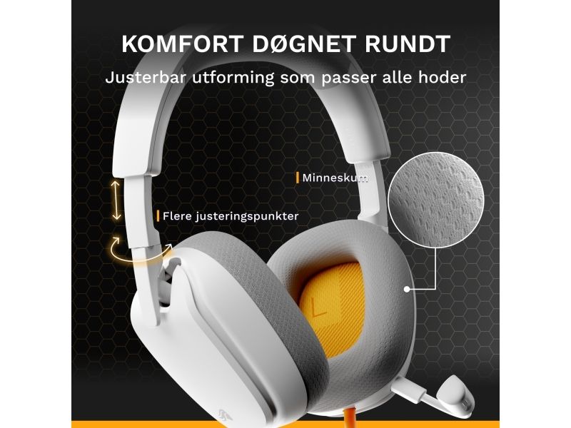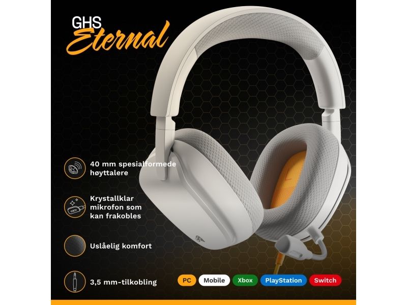 Glorious Gaming Glorious GHS Eternal – stereoheadset för gaming på PC, PS5, PS4, Xbox, Switch – specialjusterade vinklade element, justerbar löstagbar mikrofon med kristallklart ljud, 3,5 mm – tåligt, bekvämt – vitt, Kabel, Spela, Headset, Vit