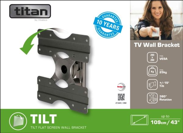 Vivanco TITAN TV-väggfäste, TILT, 43", 25 kg, VESA 200x200