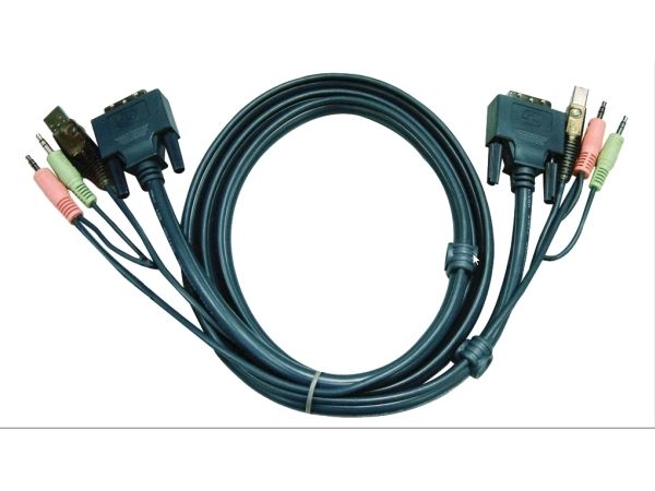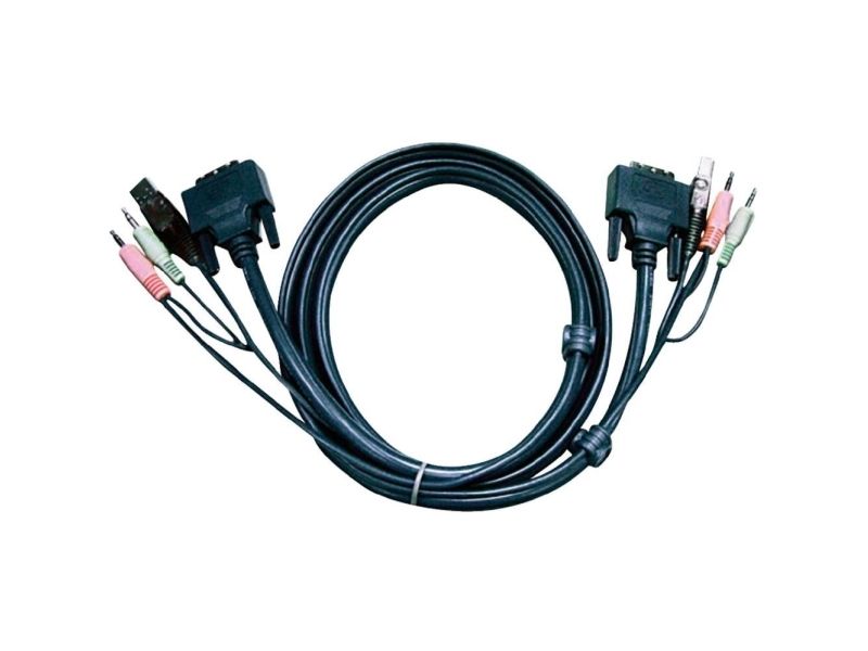 ATEN 2L-7D02U - Video/USB/ljud-kabel - USB, mini-phone stereo 3.5 mm, DVI-D (hane) till mini-phone stereo 3.5 mm, USB typ B, DVI-D (hane) - 1.8 m