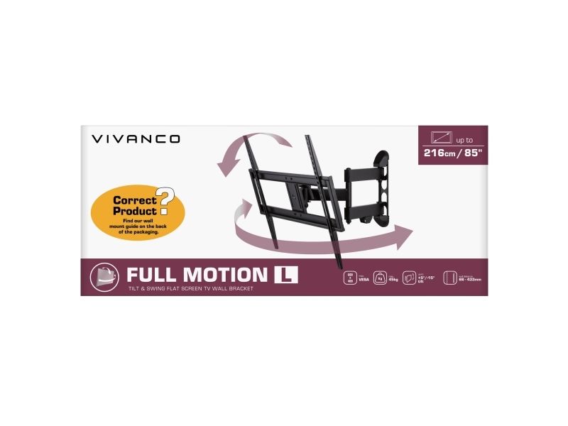 Vivanco TV-väggfäste MOTION 85", 45 kg, VESA 600x400