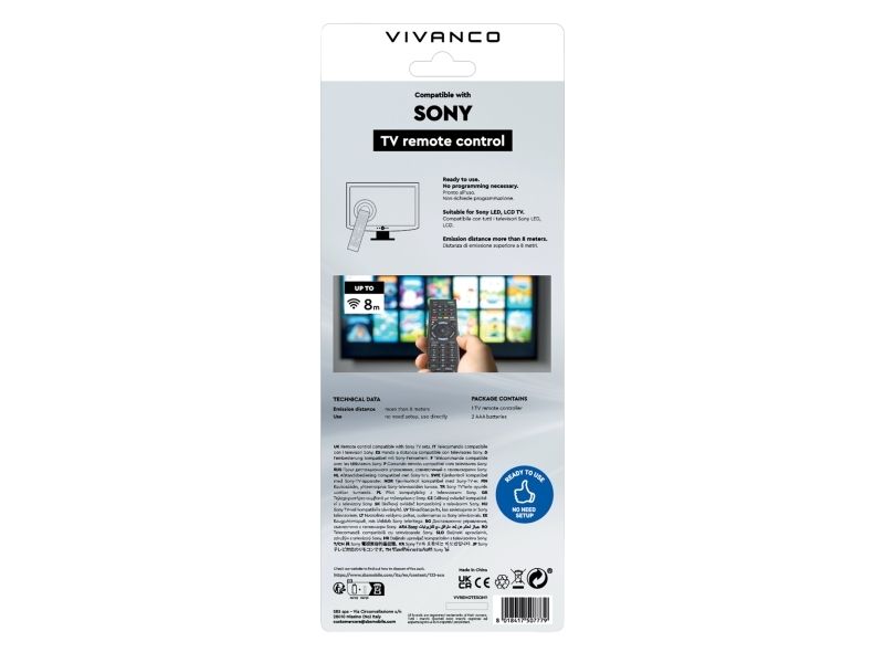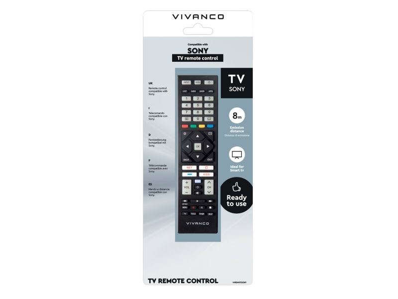 Vivanco VVREMOTESONY, TV, IR trådlös, Tryckknappar, Svart