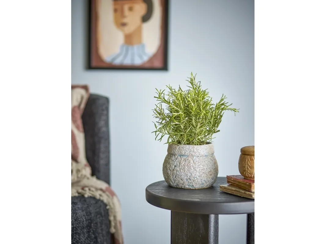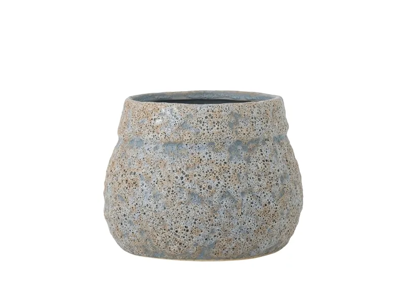 Mayia Urtepotteskjuleren fra Bloomingville er lavet af stentøj med en reaktiv glasur i grå og blå nuancer. Den ujævne overflade og organiske form giver et naturligt udtryk. Små variationer i farve og tekstur kan forekomme som en del af glasurens karakter.