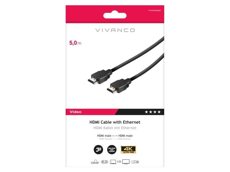 Vivanco VVVHDMI50MMK, 5 m, HDMI Typ A (standard), HDMI Typ A (standard), Svart