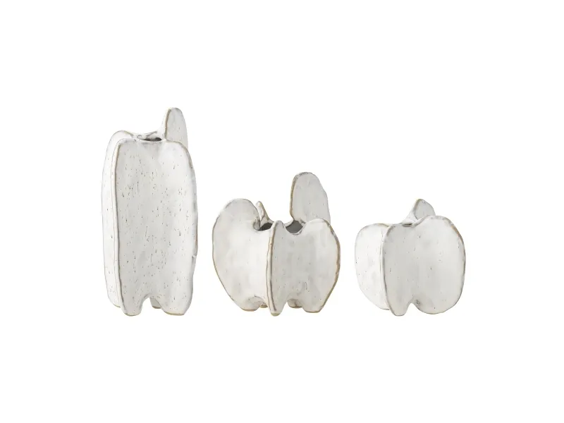 Jayce Vasen fra Bloomingville er et skulpturelt sæt af tre vaser i stentøj, hver afsluttet med en reaktiv glasur, der skaber små variationer i mønster og farveintensitet, så hver enkelt er unik. De blødt afrundede, kronbladslignende former står smukt i afstemte offwhite nuancer med varme accenter.