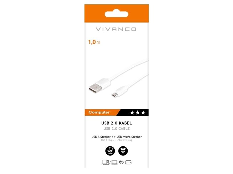 Vivanco VVITUSBMICUSBA10W, 1 m, USB A, Micro-USB B, USB 2.0, Vit