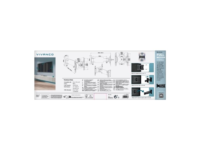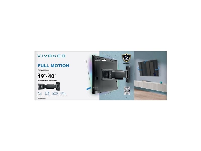 Vivanco TITAN TV-väggfäste TILT rotation 360° 40" 20 kg VESA 200x200