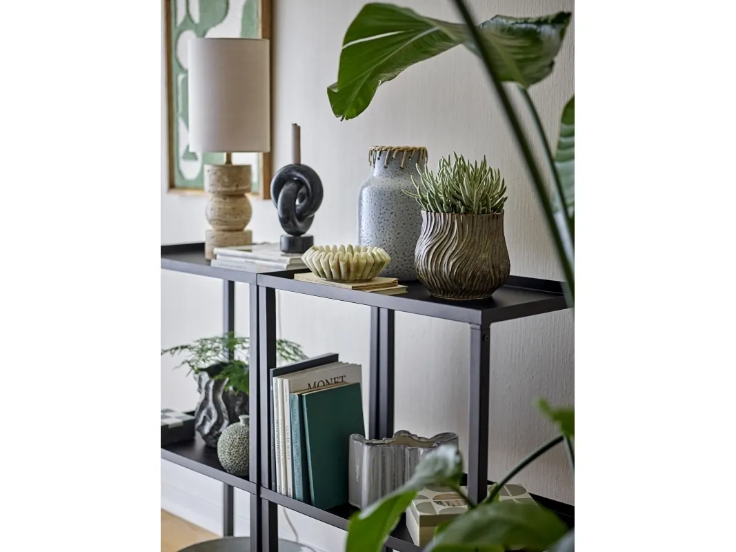 Loups Bogreolen fra Bloomingville er en modulopbygget reol i jern med pulverlakeret overflade. De slanke ben giver et let og åbent udtryk, og hylderne kan vendes, så kanterne vender op eller ned. Det modulære design giver mulighed for at kombinere flere reoler til både højere og bredere opstillinger.