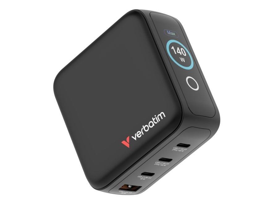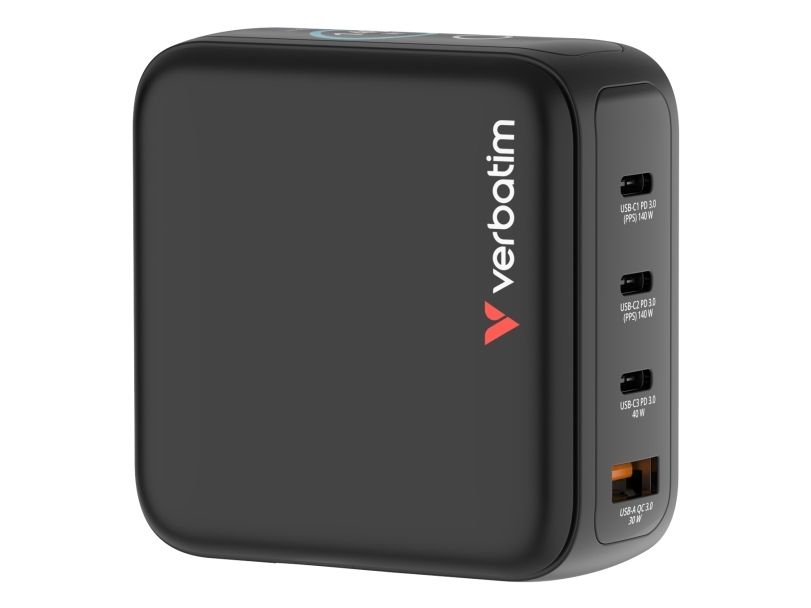 Verbatim Mini GaN-laddare 4-Port 140W med display EU/UK/US