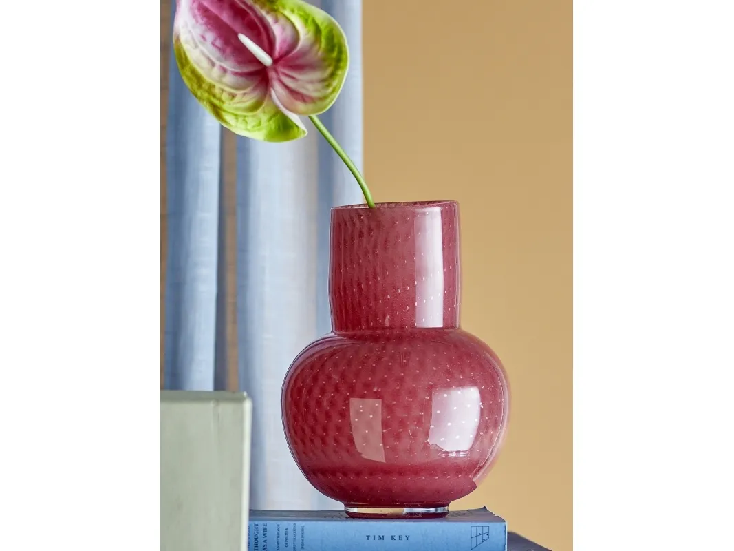 Roscoe Vasen fra Bloomingville er mundblæst, med et subtilt farvespil i varierede røde nuancer. Den livlige form tilfører et finurligt udtryk, som gør vasen til et centralt blikfang i ethvert hjem. Fordi vasen er mundblæst, kan der forekomme variationer i farve, form og mønster, hvilket betyder at hver vase er unik.