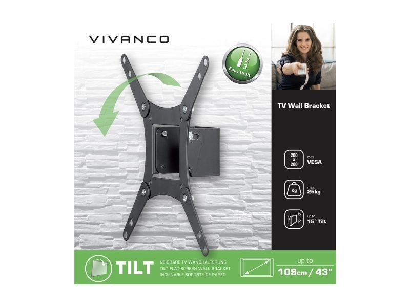 Vivanco VVTVFIX43INCH25KG, 109,2 cm (43"), 25 kg, 75 x 75 mm, 200 x 200 mm, -15 - 15°