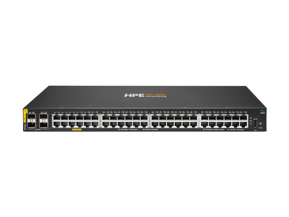 HPE Aruba Networking CX 6000 48p 10M/100M/1G Class4 PoE 4p SFP 1G 370W Switch är utformad för flexibel och robust nätverkshantering, vilket gör den lämplig för olika miljöer. Med sin 48-portars Gigabit LAN-kapacitet stöder den avancerad Layer 2-switchning och PoE Class 4, vilket garanterar prestanda och effektiv energihantering för anslutna enheter. Denna mångsidiga switch har ett chassi med sidostort luftflöde, vilket gör den anpassningsbar för både rackmonterade och väggmonterade installationer samtidigt som den bibehåller optimal kylningseffektivitet inom driftsparametrarna.