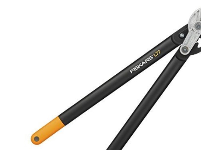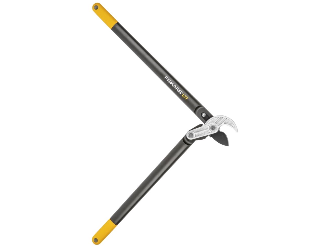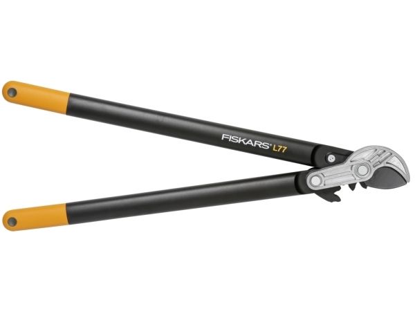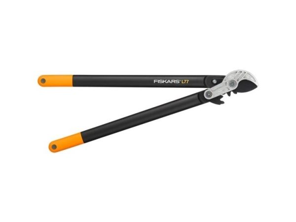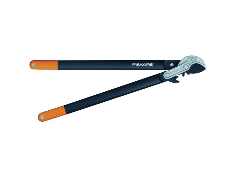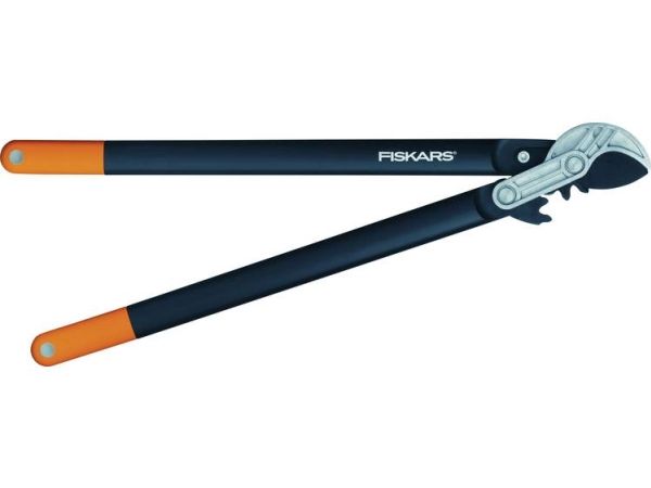 Fiskars PowerGear™ Anvil Lopper (L) L77 is a full sized lopper for the bigger cutting jobs - for example cutting tree branches and thicker branches in general. The handles are made from FiberComp™ to make them extremely lightweight and strong which is further enhanced by SoftGrip™ covered handles for increased comfort. As with other members of the PowerGear family, the patented PowerGear™ mechanism makes the cutting 3 times easier compared to standard mechanisms, which is a great advantage. The upper blade is made from high quality hardened carbon steel ensuring that they can be sharpened and hold an edge for longer. The quality of the blade is further enhanced by a non stick PTFE coating on upper blade to reduce friction and make cutting and cleaning easier. The anvil blade made from cast aluminium enables easier cutting of hard, dry wood, which is the purpose of anvil loppers.