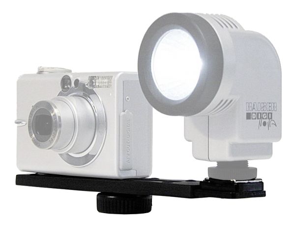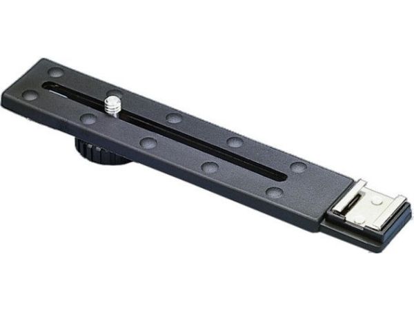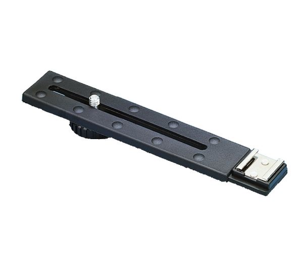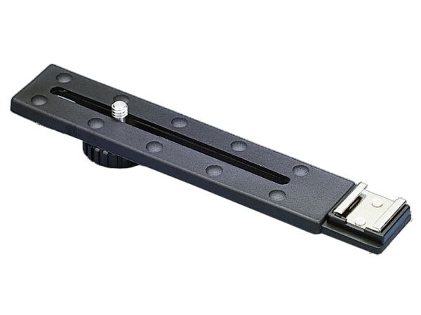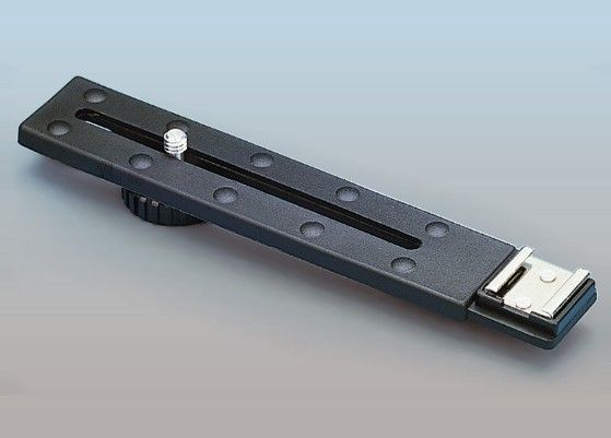 Light metal bracket with resilient contact surface. Mounting screw with 1/4" thread and tripod bush.