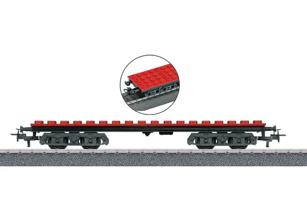 Model: This is a four-axle car with Relex couplers. The car body has commonly used knobs that invite you to build with clip-on blocks. Length over the buffers 16 cm / 6-5/16". DC wheel set 4 x 700580.