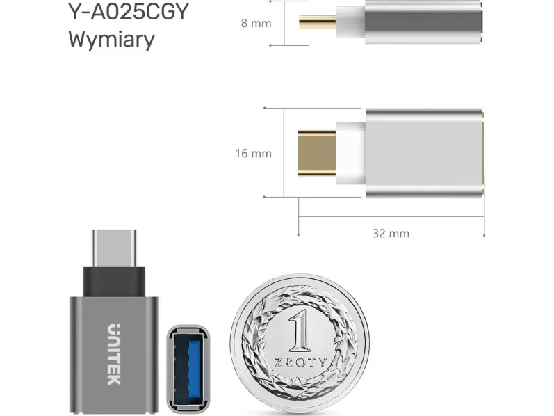 Unitek Y-A025CGY - USB-adapter - USB-C (hane) till USB typ A (hona) - USB 3.1 Gen 2 - rymdgrå