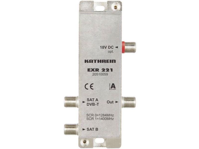 Kathrein EXR 221 SAT multikontakt Unicable 2 ingångar: 3 (2 SAT/1 jord) Deltagarantal: 2 Quad-LNB-kompatibel Standbyfunktion