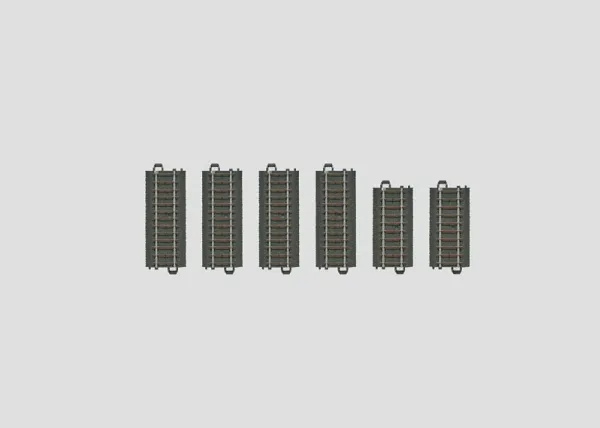Track set consisting of 4 no. Straight Track (each 94.2 mm / 3-11/16" long) and 2 no. straight tracks (each 77.5 mm / 3-1/16" long).