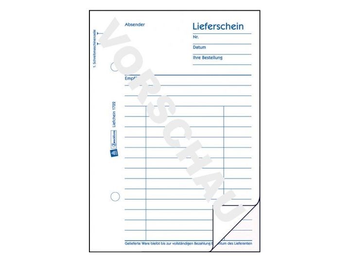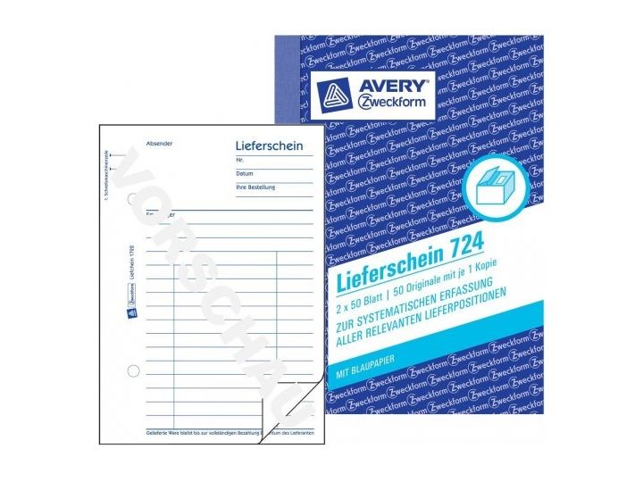 AVERY Zweckform blankettbok "Lieferschein", 2 x 50 blad A6, 2:a blad utan perforering för att stanna kvar i boken (724)