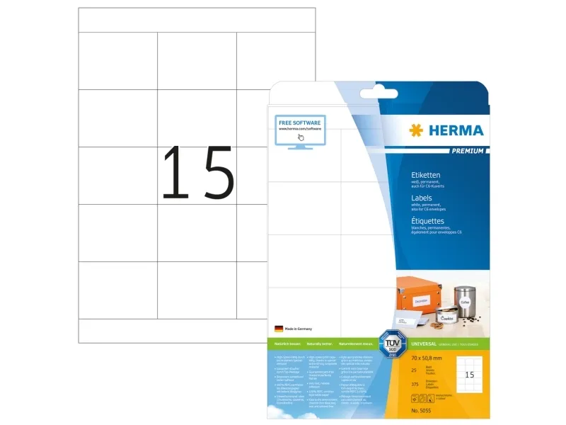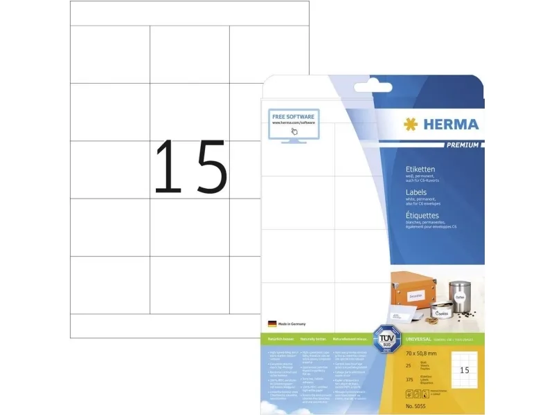 HERMA Premium - Papper - matt - permanent självhäftande - vit - 70 x 50.8 mm 375 etikett (er) (25 ark x 15 laminerade etiketter
