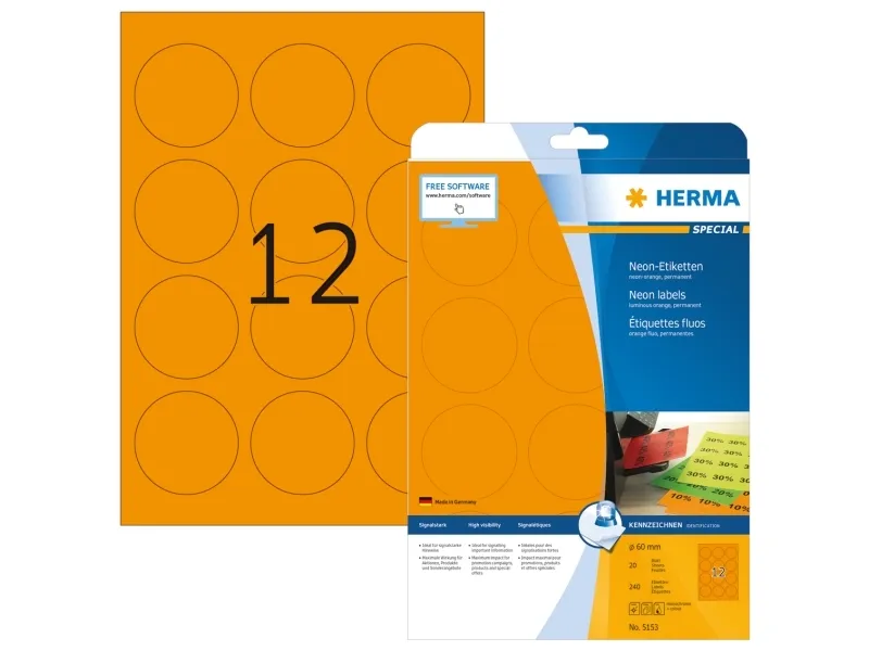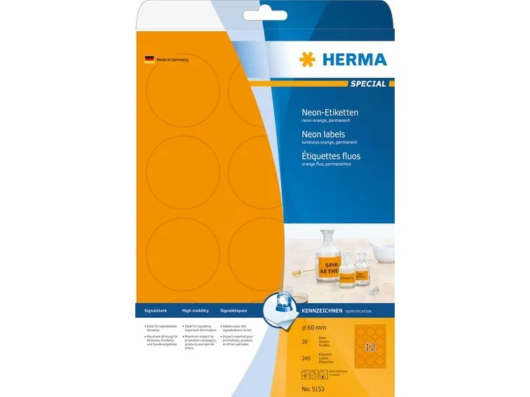 HERMA Special - Papper - matt - permanent självhäftande - skinande orange - 60 mm rund 240 etikett (er) (20 ark x 12 fluorescerande etiketter