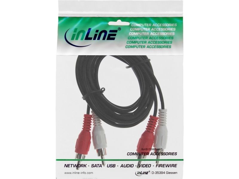 InLine 10m 2x RCA M/M, Hankontakt, 2 x RCA, Hankontakt, 10 m, Svart
