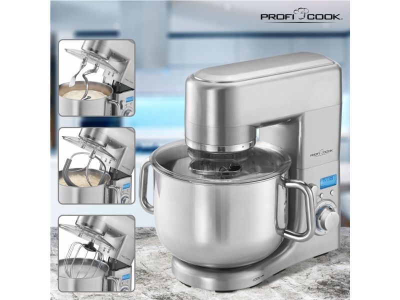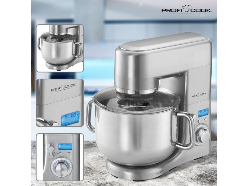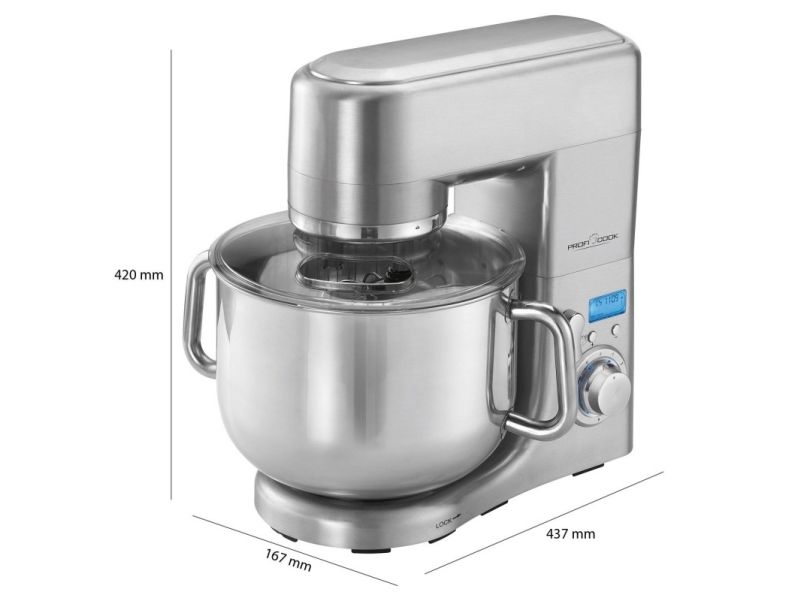 • Solid multi-food-processor med hus i aluminium • Professionel motor med lang levetid, maks 1500 watt • 8 forskellige hastighedsindstillinger • LCD display og elektronisk tidsindstilling • Ekstra stor 10 liters skål i rustfrit stål og med håndtag, til maks 7-7,5 kg dej • 8 forskellige hastighedsindstillinger, herunder pulse funktion