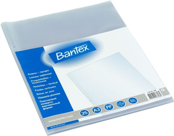 Fickor med öppning upptill. Tillverkad av hållbar, syrafri och kopieringssäker PP-film.