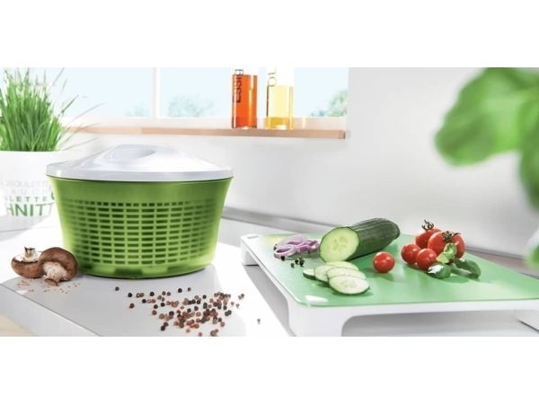 Leifheit salad spinner Signature is three times in use if required: its unique left/right spinning mechanism dries the salad particularly effective. The well-shaped bowl is perfectly suitable for the preparation and serving of salad. The sieve is heat-resistant and at the same time suitable for pasta, for example. The spinning mechanism is removable for the hygienic cleaning. 3 years guarantee.