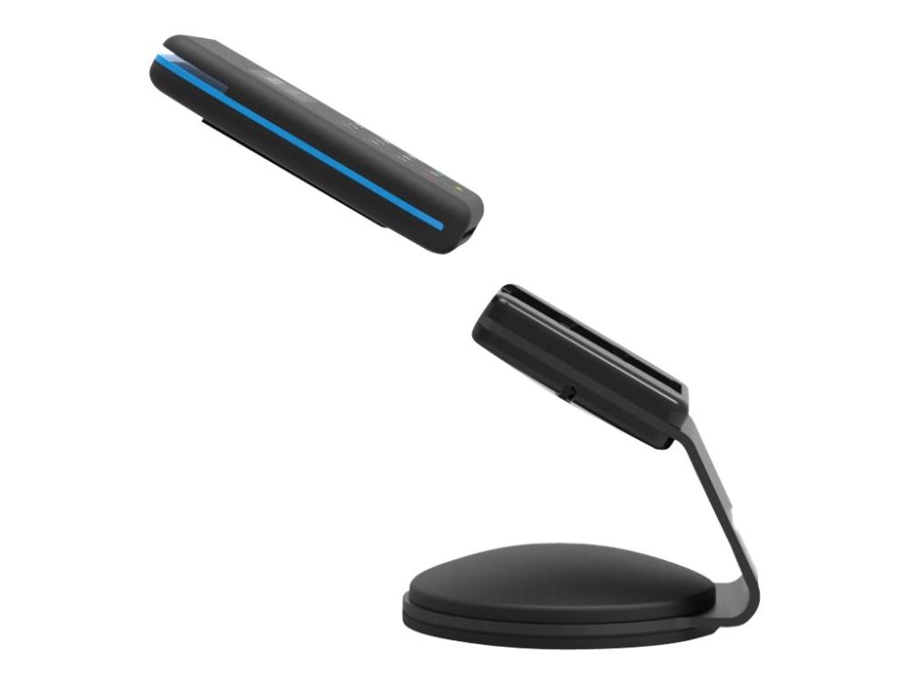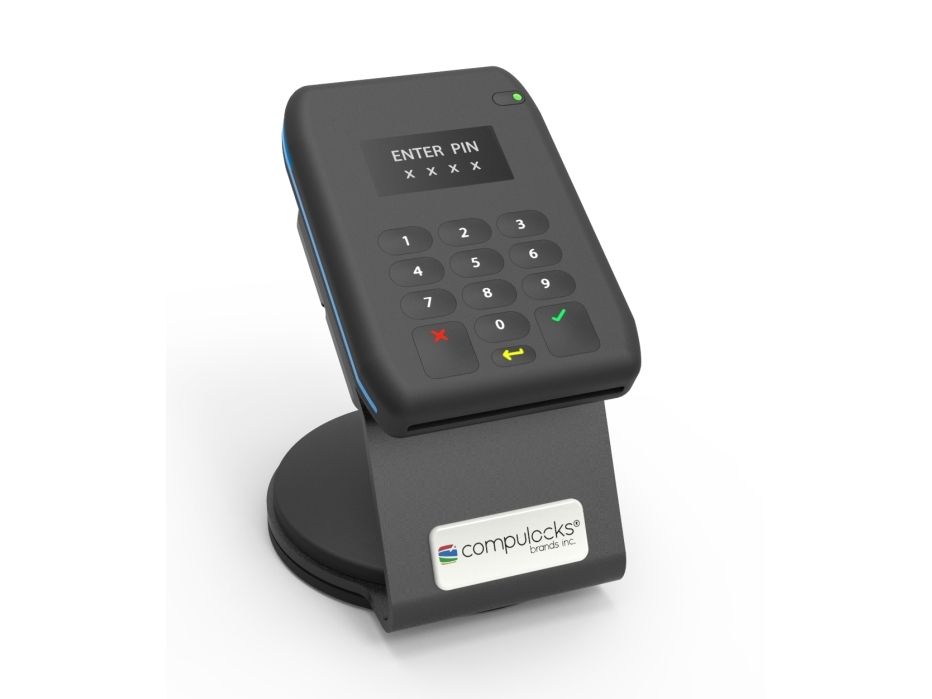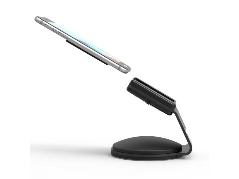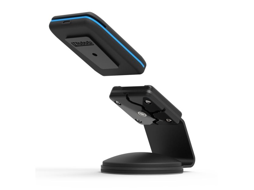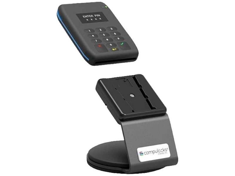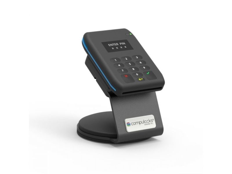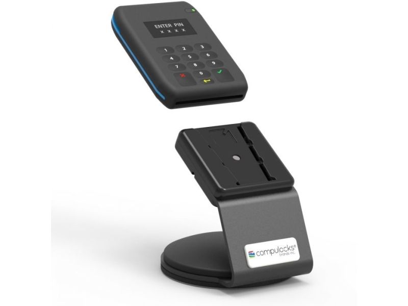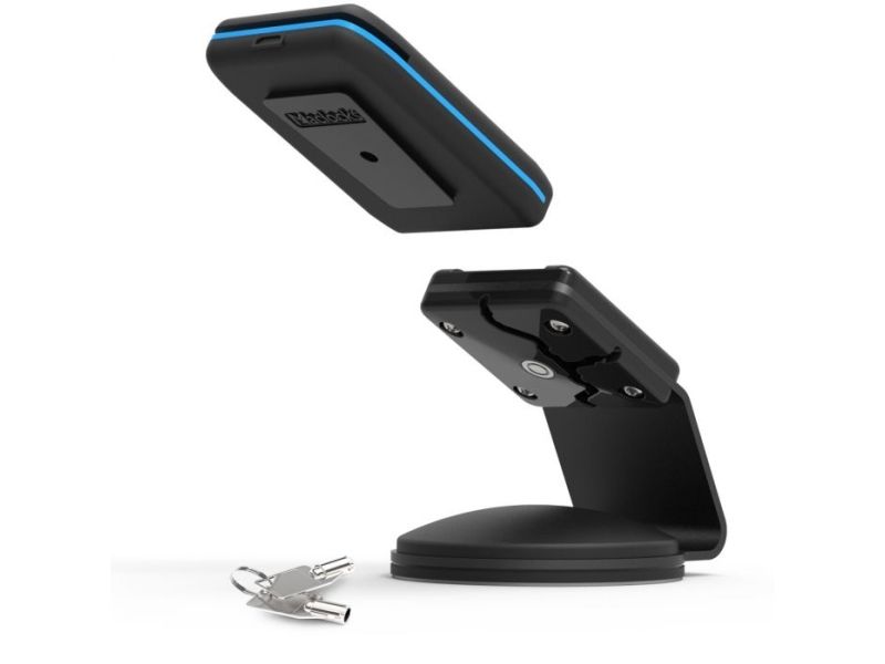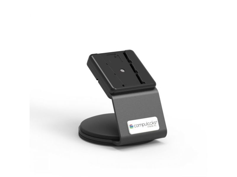 The clean looking SlideDock is a versatile product that can provide you with a simple clean way to securely display your EMV reader or Smartphone POS. The SlideDock is a two-part system, the first being an adhesive plate that connects to the back of the device. The second is an angled swivel stand, with a quick lock base for a secure “Grab & Go” solution. Once the connecting plate has set on the back of the device you slide it on the SlideDock stand. The first measure of security is an integrated keyed cylinder lock that latches the device in to place. The second is securing the stand itself, with adhesive or screw-on base, to the table surface or wall.