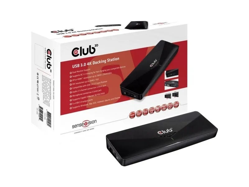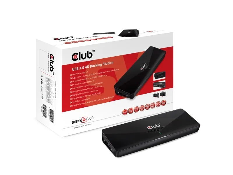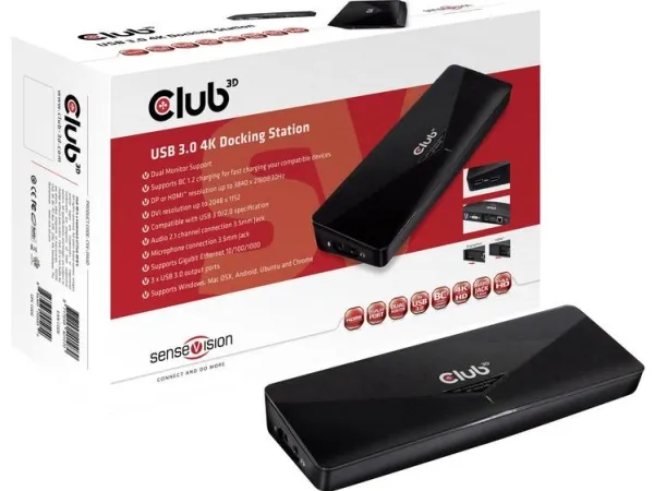 Club 3D SenseVision USB 3.0 4K Docking Station - dockningsstation - USB - DVI, HDMI, DP - 1GbE