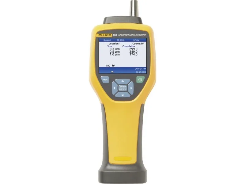 Ta ännu en titt på kvaliteten på inomhusluften.\nDen partikelmätaren Fluke 985 är det självklara valet för yrkesmänniskor i HVAC-/IAQ-branschen. Fluke 985 används för filtertest och IAQ-mätningar och är den bärbara lösningen för mätning av koncentrationen av luftburna partiklar. Använd Fluke 985 när du omedelbart vill kunna lösa klagomål eller som en del av ett omfattande förebyggande underhållsprogram.\n\nFluke 985 har en stor skärm, intuitiva ikoner för navigering och presentation av data på skärmen. Du får mätdata som du kan avläsa direkt utan att bläddra runt i undermenyer. Fluke 985 är lätt och enkel att använda i alla lägen och med de enkla alternativen för dataexport med hjälp av USB-kabel och -minne är det lätt att granska och analysera data var som helst, när som helst.