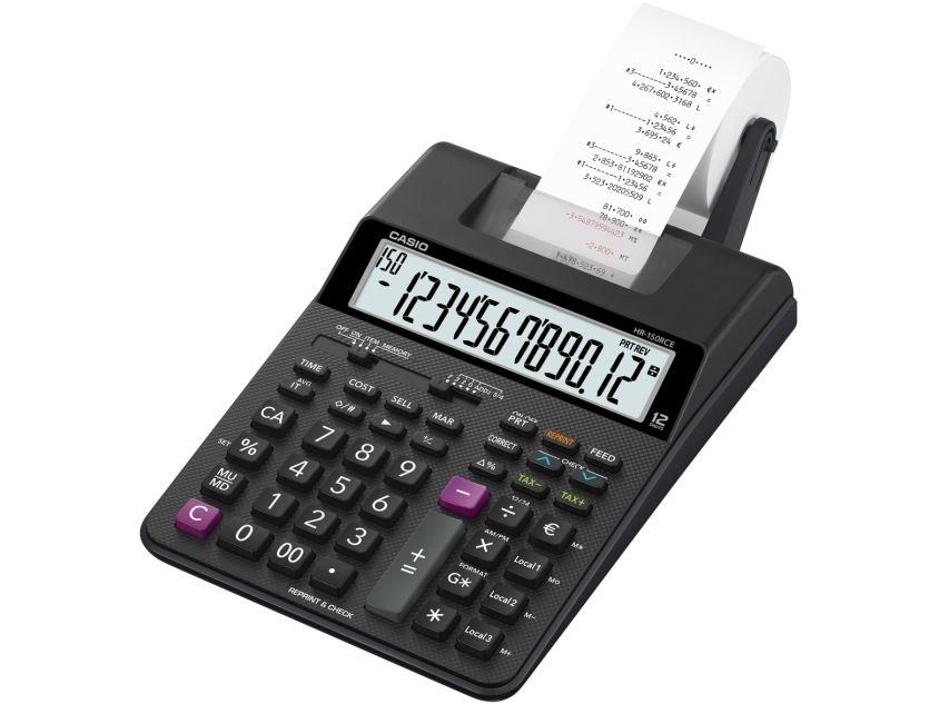 Casio HR 150 RCE tryckande fickräknare, bordsfickräknare, svart display (inställning): 12, batteri-/nät/valfritt (B x H x D) 165 x 65 x 295 mm